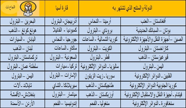 أفضل المنتجات في دول قارة آسيا: