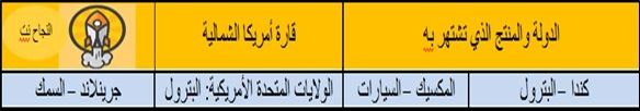 "غرينلاند": تتميَّز بصيدِ وصناعة السمك بفضل مياهها الغنية بأنواعٍ متنوِّعةٍ من الأسماك مثل الحوت والقد والسلمون والقرش، وتُعدُّ هذه الصناعة من أهمِّ مصادر دخل البلاد، في حين تتصدَّر "الولايات المتحدة الأمريكية" قائمةَ مُنتجي البترول في العالم، فتُنتِج أكثر من 13 مليون برميل يومياً من النفط الخام، وتأتي "كندا" في المرتبة الرابعة عالمياً في إنتاج النفط، بينما تُعدُّ "المكسيك" إحدى أكبر الدول المُصنِّعة للسيارات في العالم، فتستضيف مجموعةً كبيرة من الشركات العالمية لتصنيع السيارات مثل فورد وجنرال موتورز ونيسان وهوندا.