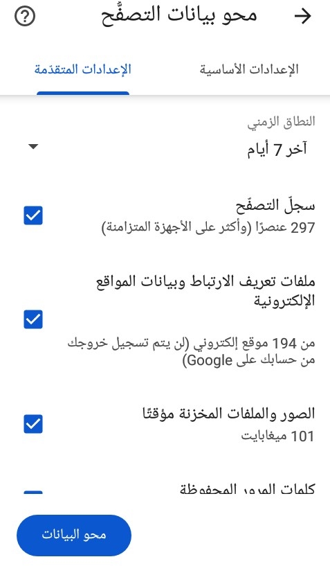 بعد إكمال الخطوات السابقة سيُحذَف سجل تصفُّحك على كروم وأي سجل حددته على جهازك بما يتضمن سجل بحث جوجل.