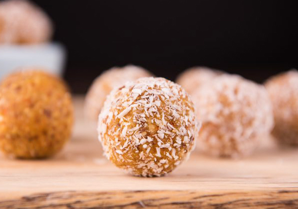 - يأخذ كميّة من المزيج ويكور على شكل كرات صغيرة الحجم ويُغمّس بجوز الهند المبشور.