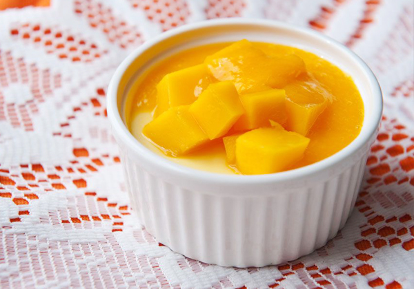 - نضع قطع المانغا فوق المزيج بشكلٍ منسق، ثّم يُسكب الجلي فوقها.