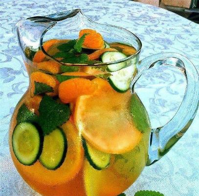 امزجوا المكونات كلها في إبريق العصير وضعوه في البراد لمدة ساعتين على الأقل أو ليلة كاملة إذا أمكن. اشربوا من هذا الماء طوال اليوم.